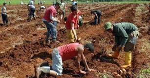 Agricultores de Mayabeque laboran en la cosecha de tomate para garantizar la elaboración de pasta en conserva con destino al consumo poblacional y la...